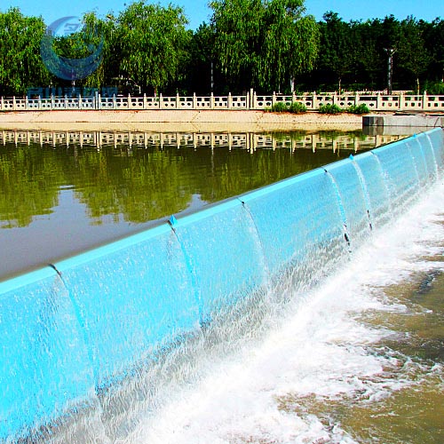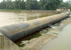 橡膠壩使用壽命短(橡膠壩采用的是再生橡膠原料,壩袋易老化,容易被上游漂浮物或尖銳物損壞,從而降低使用壽命);運行管理難度大(洪水過后一旦壩面淤積較厚,要求人工清理,否則壩袋不能正常升起蓄水,增加了后期的人工費用)。充水式橡膠壩冬季冰凍容易損壞壩袋,而充氣式橡膠壩不能調節(jié)壩高。